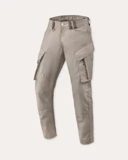 Slitesterkt 450D polyfiberstoff på forsiden, lårene, bakre skulderparti og bak på leggene, kombinert med ripstop-forsterkninger i områder med høy slitasje (som sete, knær og legger) for ekstra holdbarhet.