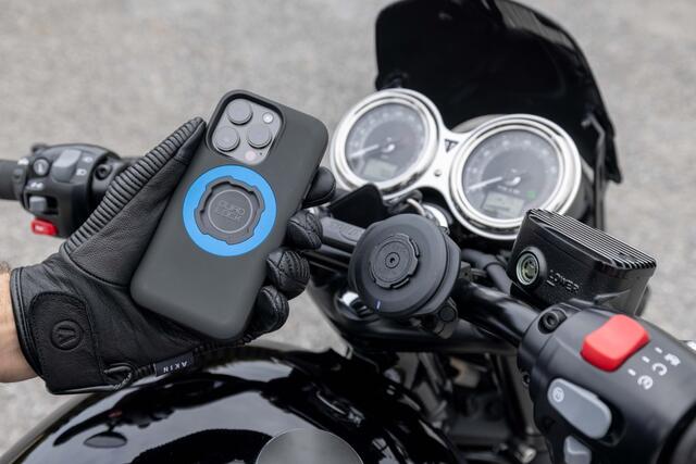 Quad Lock tilbyr trådløs lader som kan kombineres med motorsykkelfester. Dette er ideelt for lange turer og bruk av navigasjon som Google Maps, som trekker mye strøm.